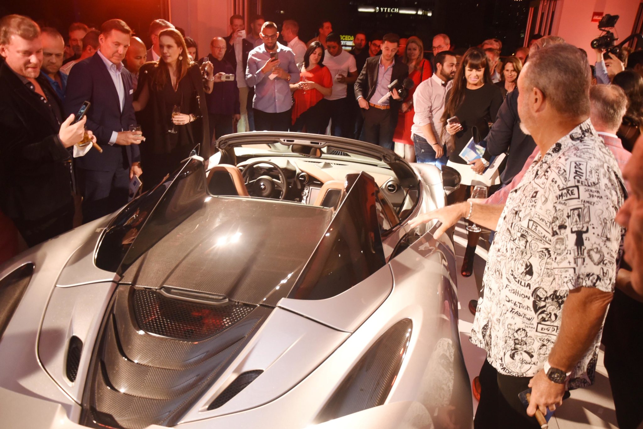 At 8:30 p.m. the moment everyone had been anticipating arrived. After a speech from CEO Ken Gorin and McLaren Marketing representative Abe Quigley, the cover was finally removed and the convertible super car was revealed.