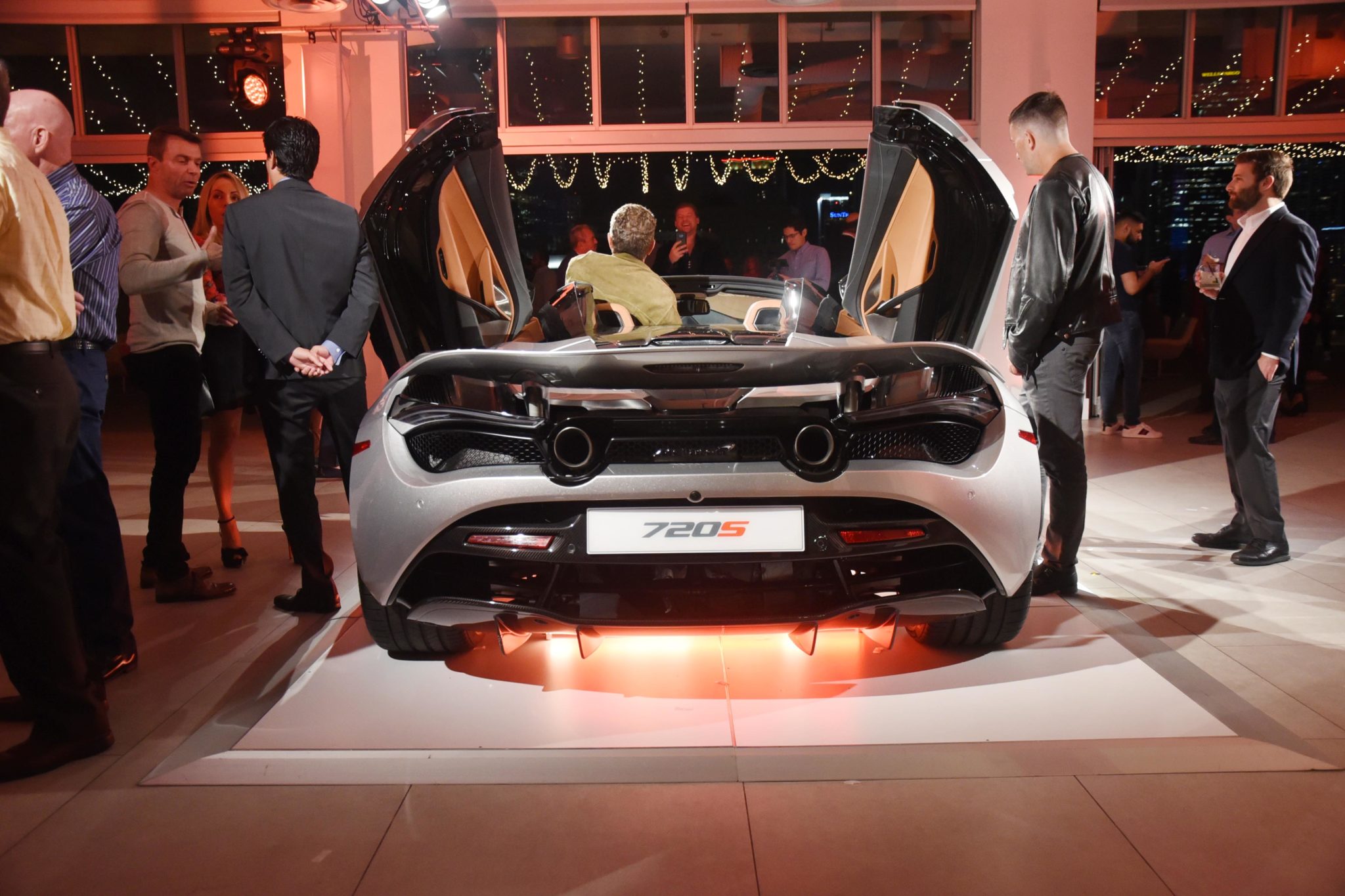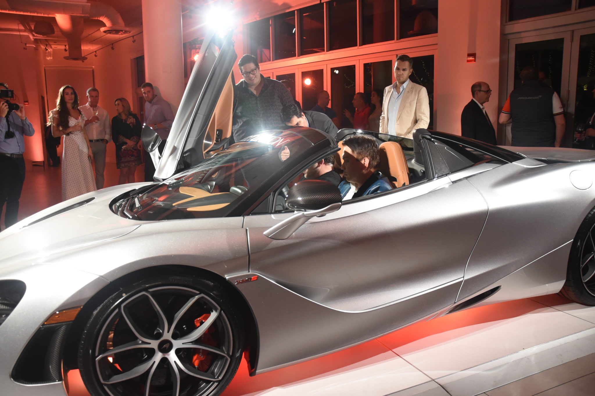 The building illuminated in McLaren’s signature orange lights as guests began arriving quickly and were treated to a special viewing of the $1.3 million dollar, McLaren Senna. McLaren fans also had the opportunity to test drive a 600 LTS, 720S or a 570S Spider. After a drive around Downtown Miami, guests headed up to the shining top roof for a breathtaking view of the twinkling Miami Skyline. The live saxophone player and violinist accompanied by a Cuban cigar maker along with the breathtaking ambiance lighting, all set the stage for the star of the night: the 720S Spider.